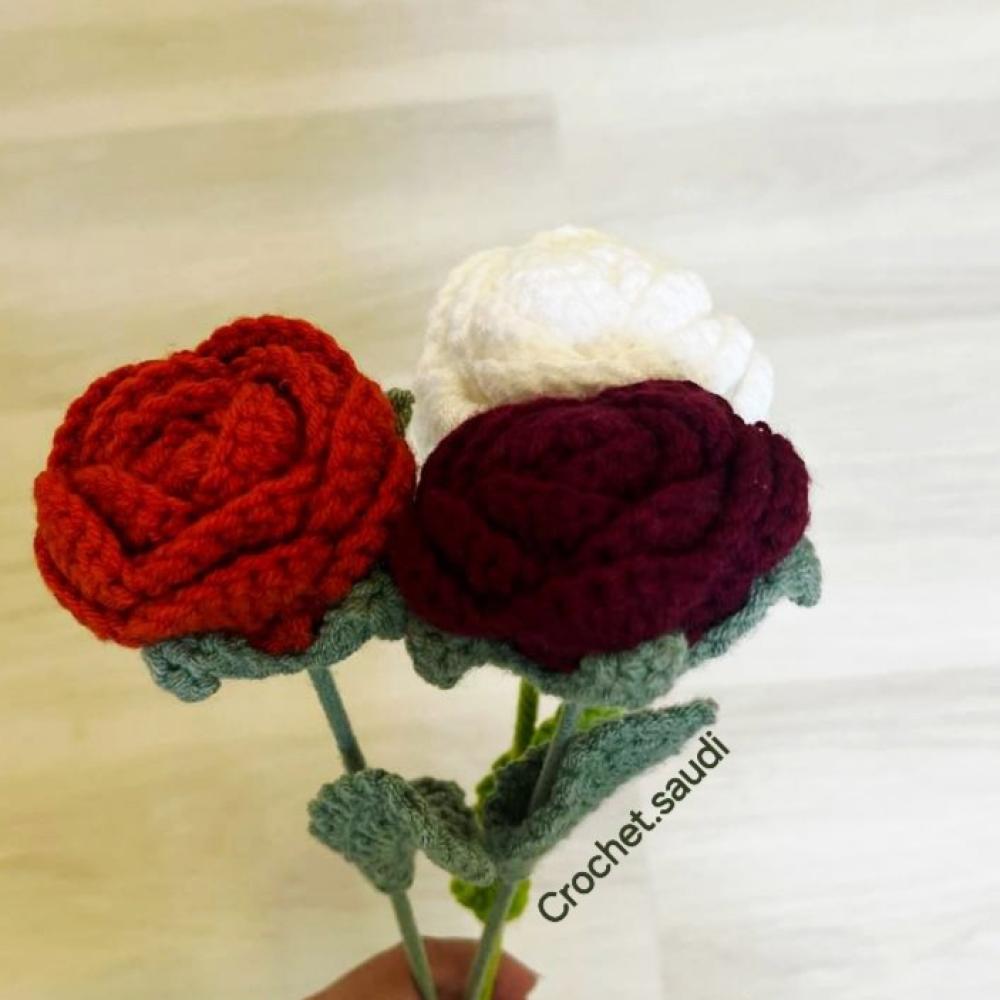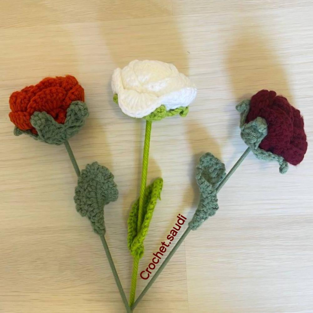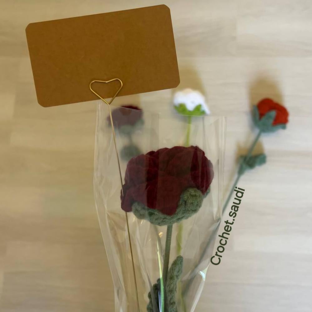 وردة جوري من الكروشيهيتم وضعها في كيس سولفان وتربط بشريطويتم وضع بطاقة إهداءورد لايذبلمناسبة للإهداء مع وضع كلمات معبرة