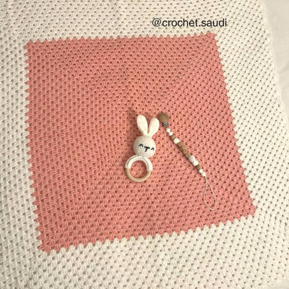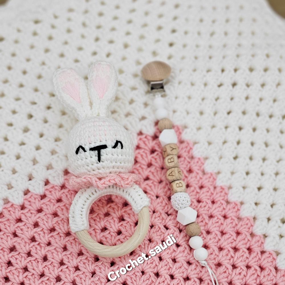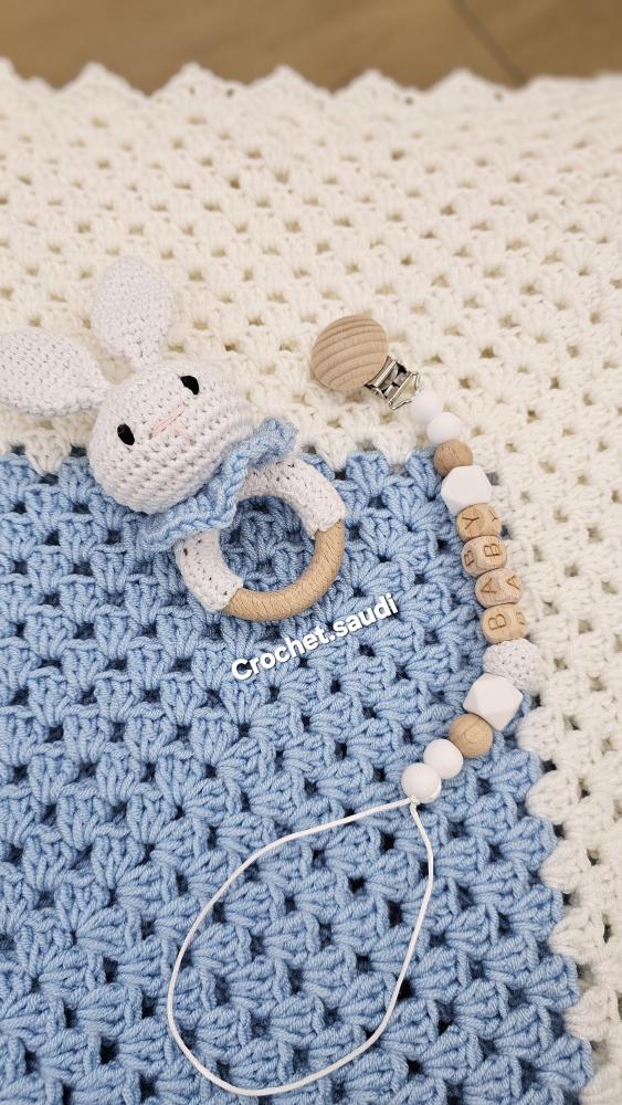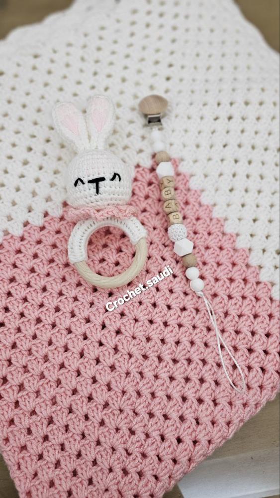 المكونات : بطانية وخشخيشة الأرنب وتعليقة لهاية