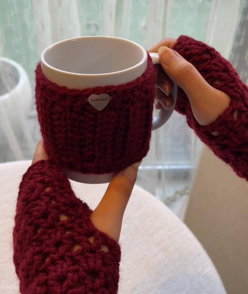 حافظة أكواب وقفازات كروشية تمنحك إحساس بالدفء ولمسة فخمة من الصنع اليدوي 💕