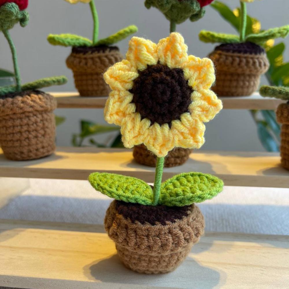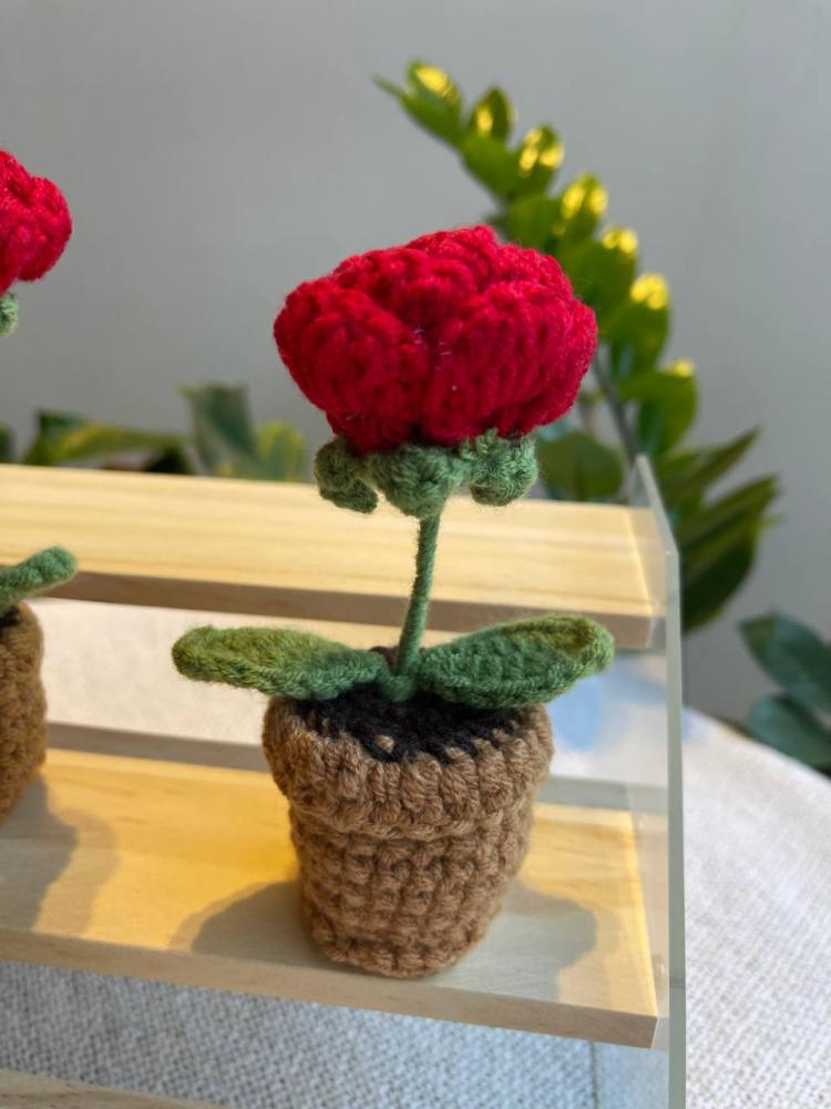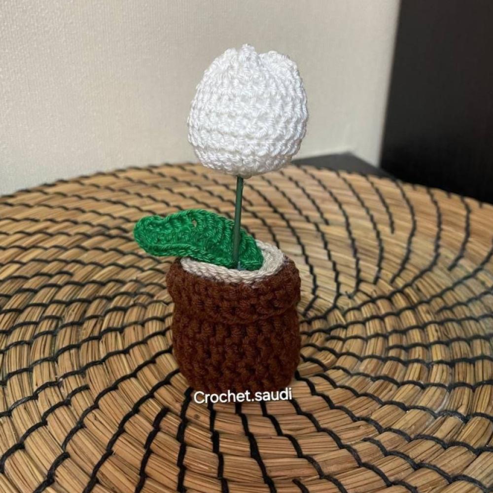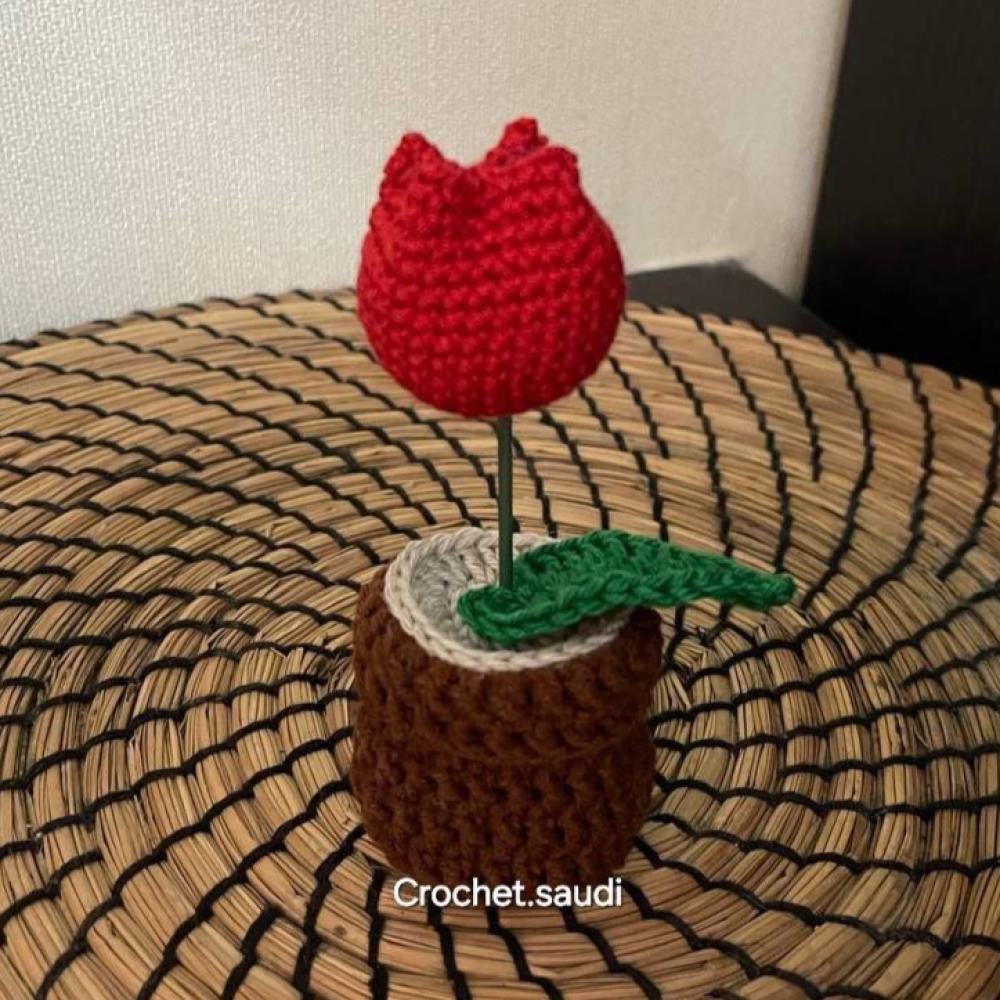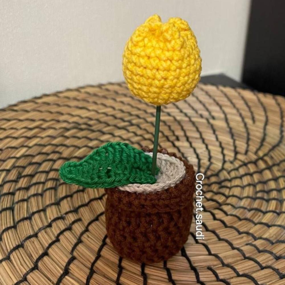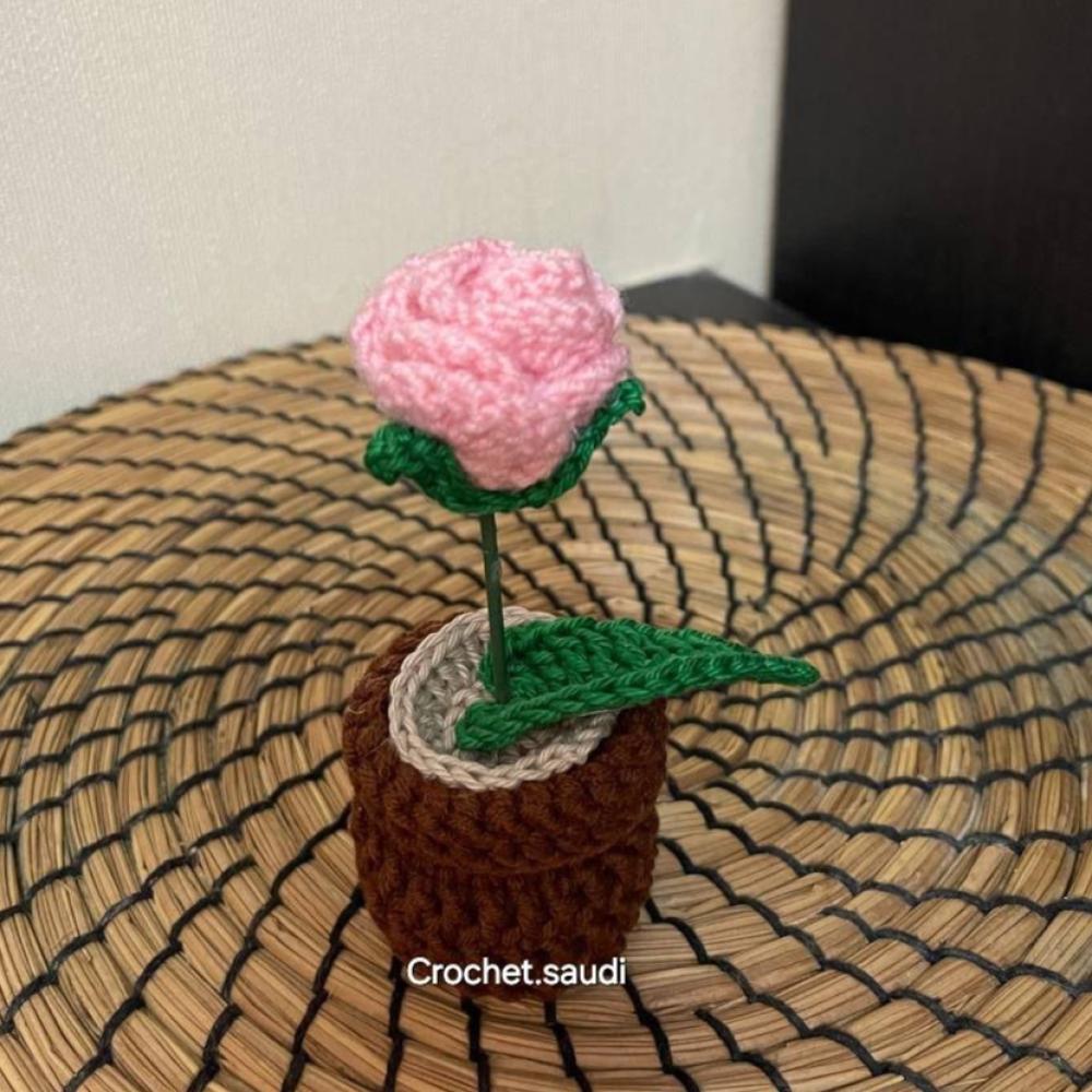 أصيص صغير مصنوع يدويًا مزين بورود الكروشيه، يتميز بتصميم أنيق وألوان مشرقة تضفي لمسة من الدفء والجمال. مثالي لديكور المنزل أو المكتب وهدية مميزة تدوم طويلاً.